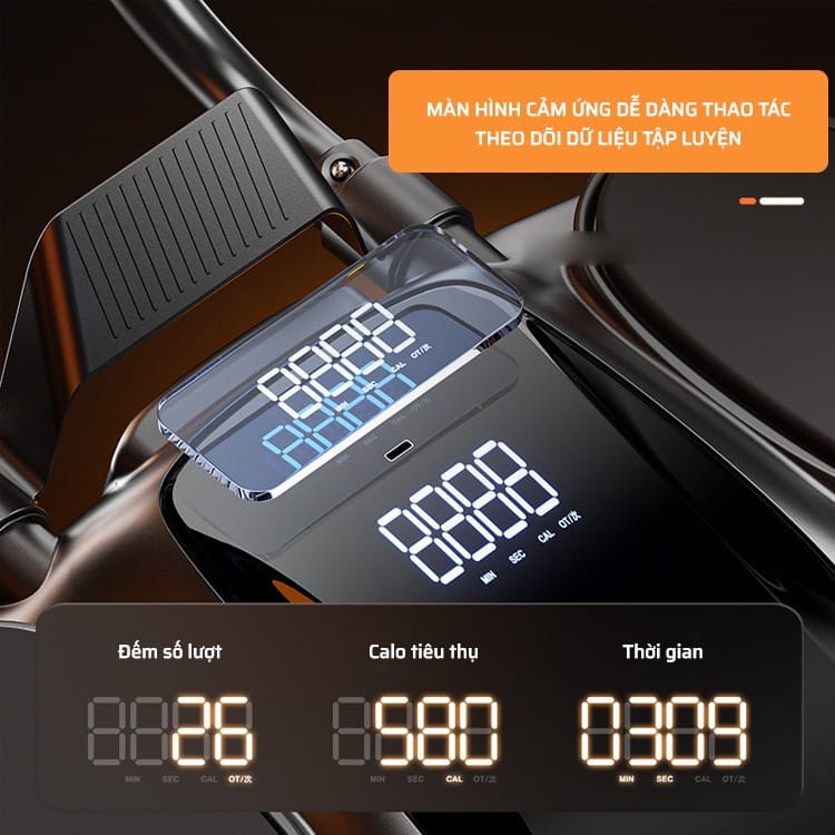 Điểm nâng cấp đáng giá nhất trên con lăn tập bụng FL0078 chính là màn hình cảm ứng tích hợp, giúp bạn: